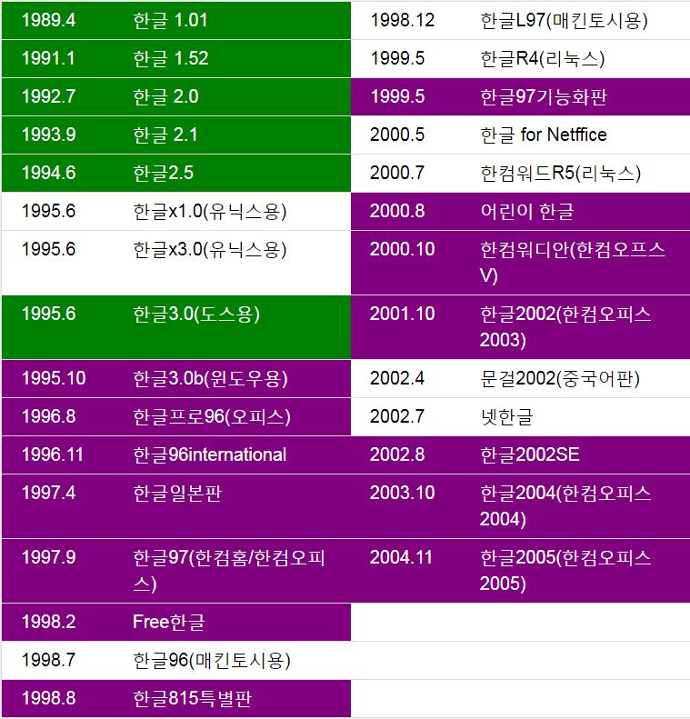 한글 3.0은 MS-DOS 버전이다. 같은 시리즈의 윈도우버전은 3.0b로 발표되었으며 윈도우95에 설치하였다.